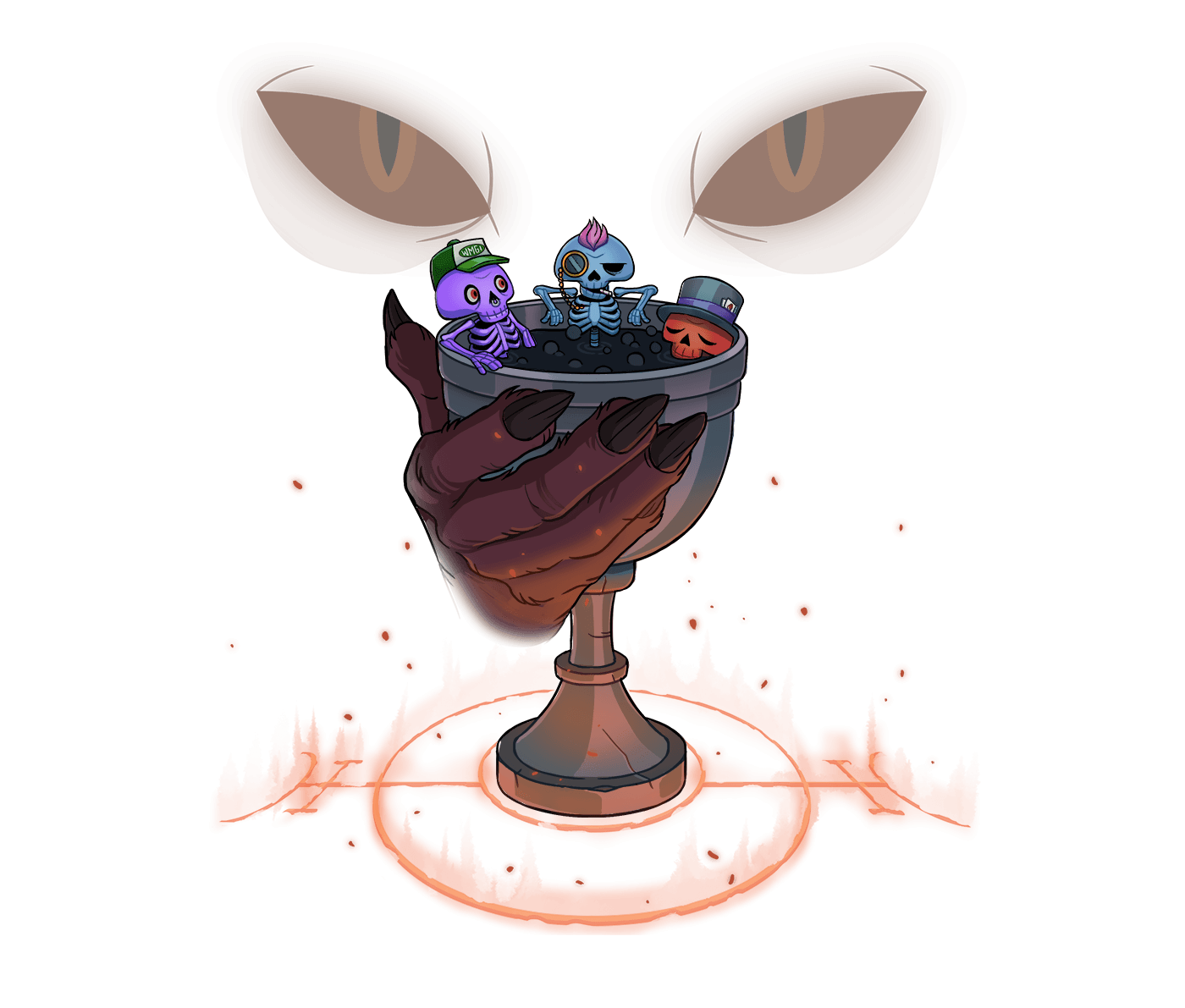 The lore around the Grim Syndicate has been a big part of this project, as it combines our love of art and storytelling. Previously, our team worked on a small iOS game called Nodeshifter on iOS and Android, so we have experience in game building. As avid (tabletop, board, and video) gamers, we’d love to take you to the world of the Thereafter in a card game. Expect competitive mechanics, new artwork, and lore.